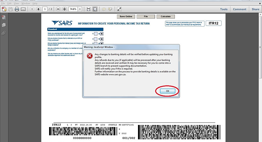 During the first week of this month the South African Revenue Service (SARS) or advisor simply logged onto eFiling, completed the tax return, that is, for small business. I presume that any individual wishing to pay their income taxes via Standard Bank will experience the same ... Access Content